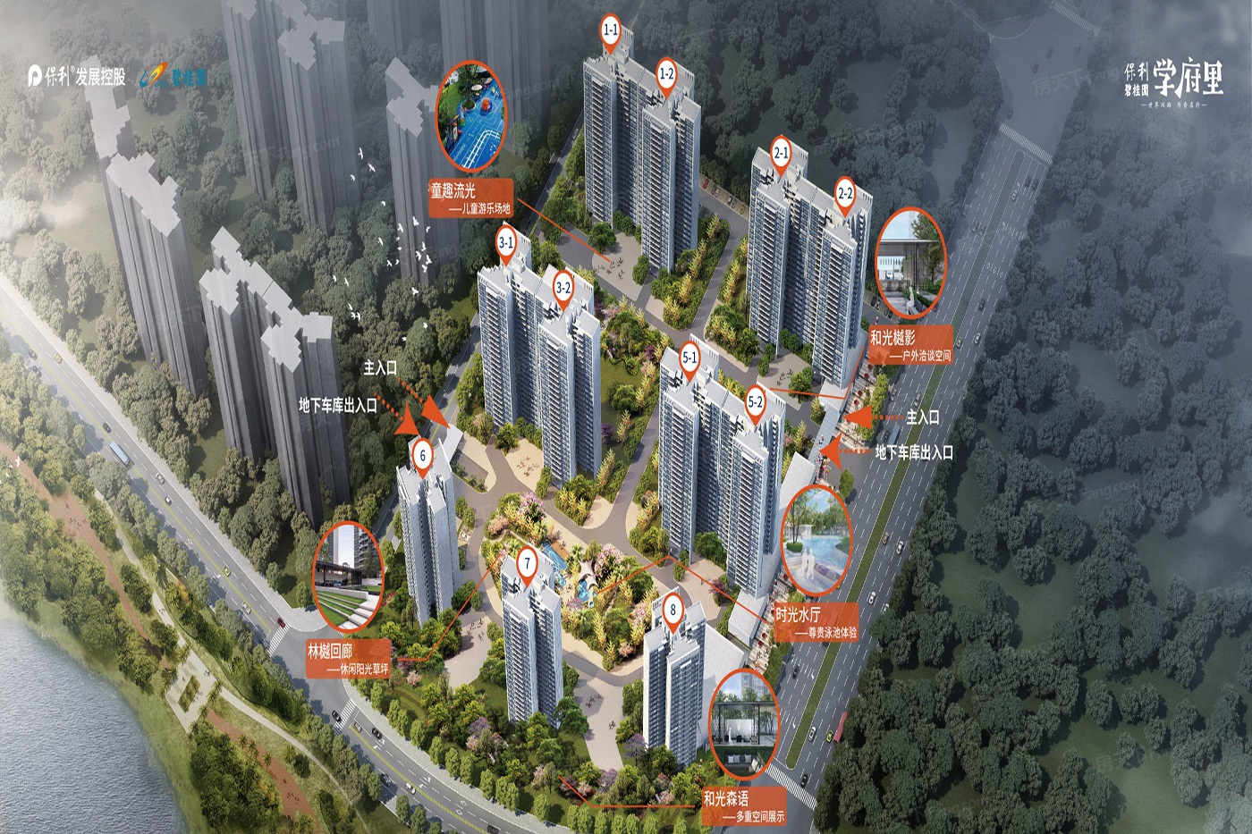 保利·碧桂园学府里目前在售2、3、6号楼,户型涵盖:90-119㎡3-4房,带装修均价约6600元/㎡,均为2梯5/6户,均为27层高,3栋交房时间为2023年9月30日,已提前交付。