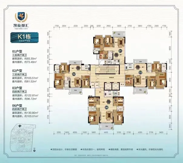 总价50万起 在售104-121平方3-4房户型