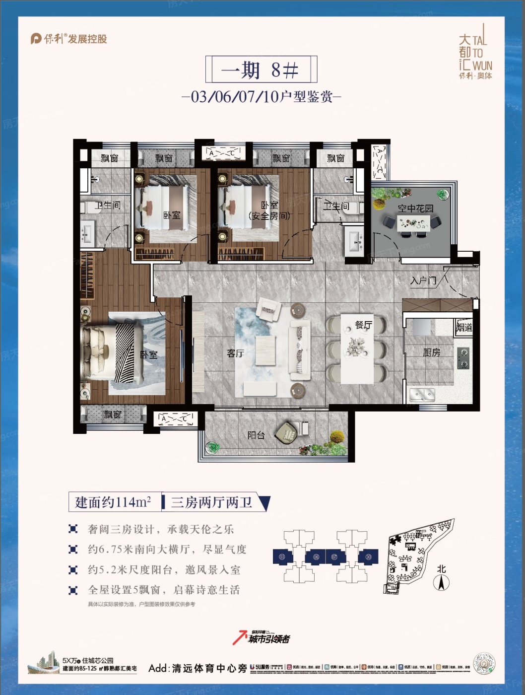 保利奥体大都汇楼盘位于清远清城区奥林匹克体育中心旁,由清远保泓置业有限公司精心打造,项目正持续推售中,最新参考价格为5700元/平方米(保利奥体大都汇在售一、二期85-125㎡3-4房户型,带装修均价约5700元/㎡。目前主推1期8栋115㎡3房,即将上线9栋85-115㎡3房,2梯6户,现房。),通过对项目价格、项目户型、交通配套、教育配套、生活配套、小区规划等维度进行分析,保利奥体大都汇楼盘价值评分为8.5分。