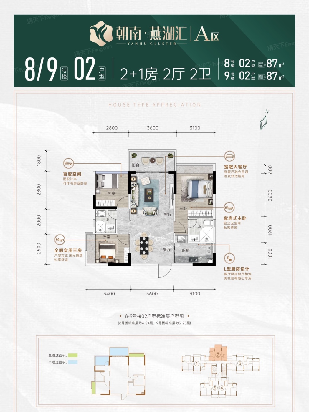 当前,朝南燕湖汇价格为7600.00元/平方米(朝南燕湖汇全新加推三期c区2号楼83-117方,总高25层,2梯5户设计,87-95方三房北向飞机户型或南向经典格局,117方南北对流双阳台四房。带装修7600元/㎡,预计交楼时间为2025年7月。),较周边三公里在售普通住宅项目均价低9.8%,朝南燕湖汇项目价格具备一定优势。