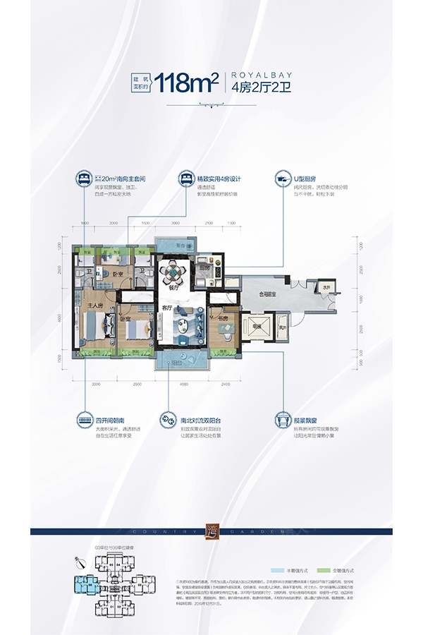 停车位的配比为1:3,洋房有地下车库,共三层,地下停车位:4126个(全盘总数)