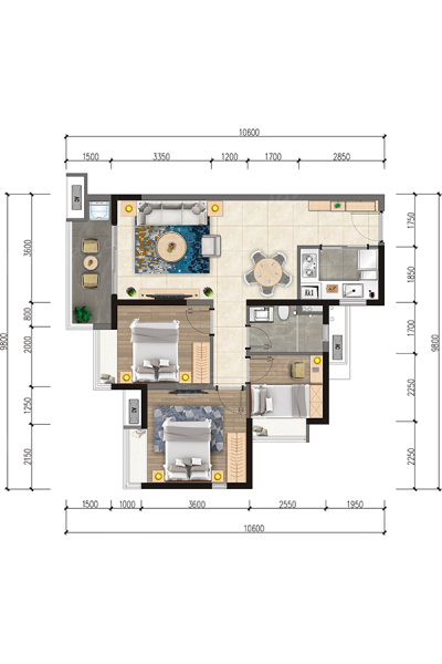 各个空间户型方正,后期空间利用率高;全明通透户型,居住舒适度较高,整个空间采...