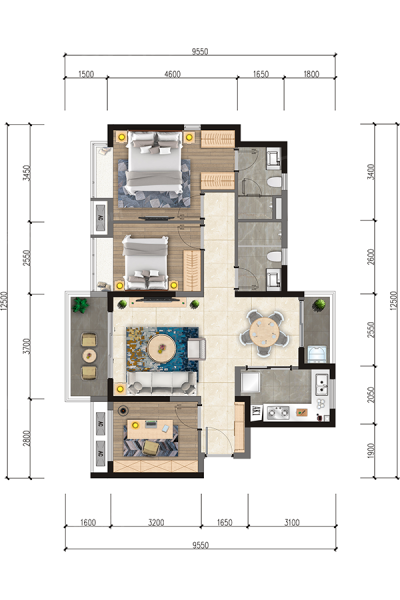 各个空间户型方正,后期空间利用率高;整个空间全明通透,采光良好,同时利于居住...