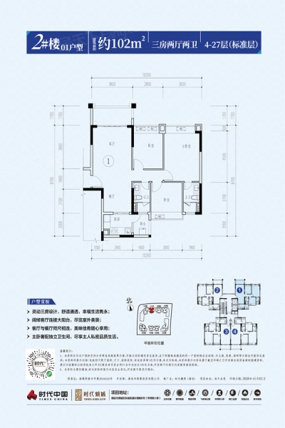 各个空间户型方正,方便室内家具布置;全明通透户型,居住舒适度较高,整个空间采...