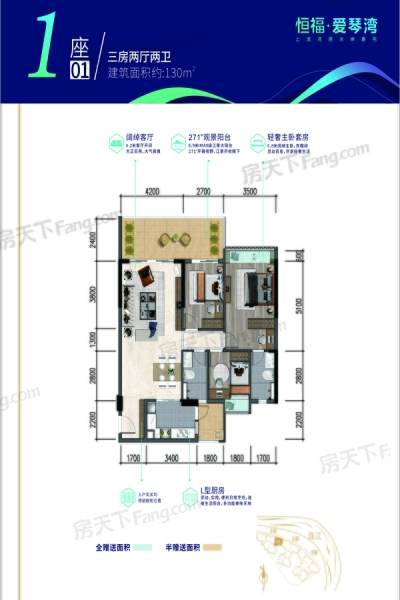 清远恒福·爱琴湾3室2厅2卫1厨130.00㎡户型图-凯时娱乐