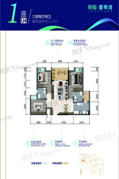 清远恒福·爱琴湾3室2厅2卫1厨117.00㎡户型图-凯时娱乐