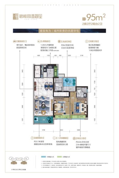 各个空间户型方正,方便室内家具布置;全明通透户型,居住舒适度较高,整个空间采...