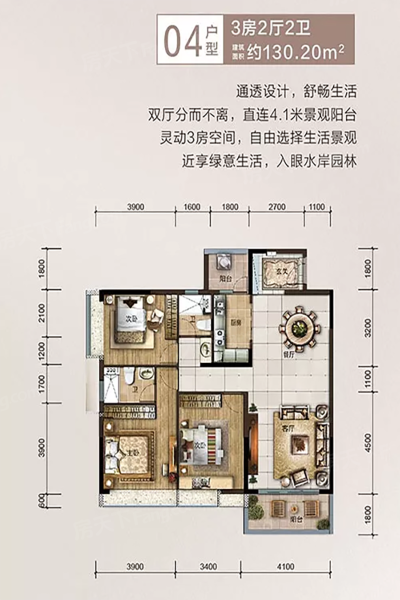 各个空间户型方正,方便室内家具布置;全明通透户型,居住舒适度较高,整个空间采...