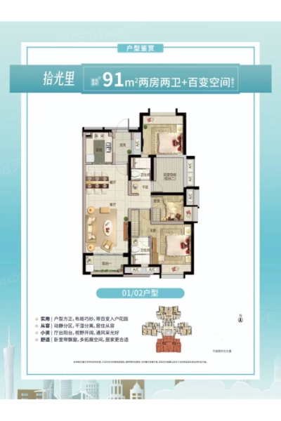 91㎡2房01-02户型