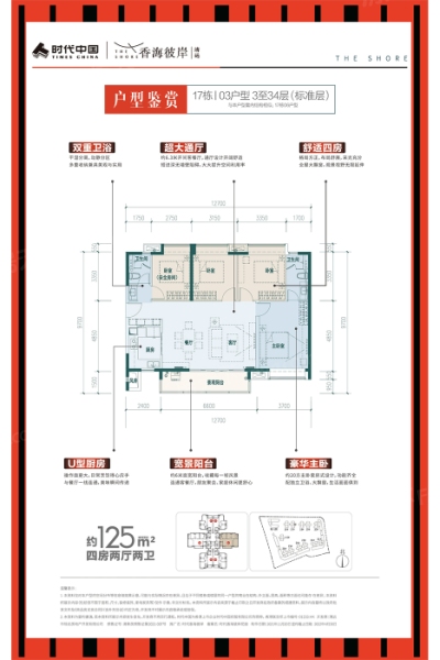清远时代香海彼岸(二期)4室2厅2卫1厨125.00㎡户型图-凯时娱乐