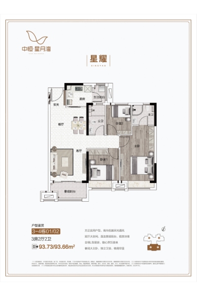 清远中恒·星月湾3室2厅2卫1厨93.00㎡户型图-凯时娱乐