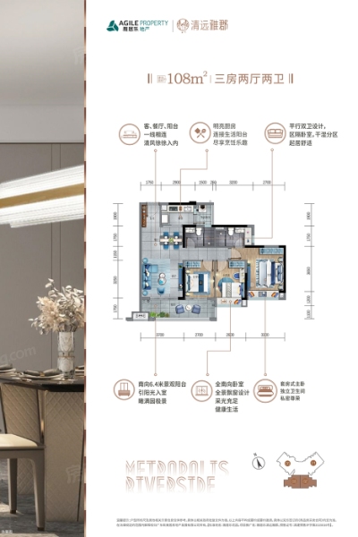 各个空间户型方正,方便室内家具布置;整个空间全明通透,采光良好,同时利于居住...