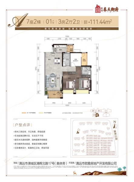 清远欧雅春天花园3室2厅2卫1厨111.44㎡户型图-凯时娱乐