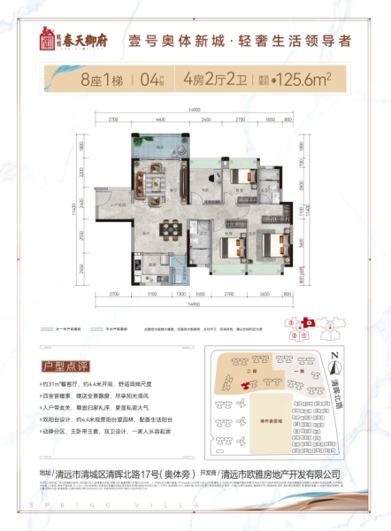 清远欧雅春天花园4室2厅2卫1厨125.60㎡户型图-凯时娱乐