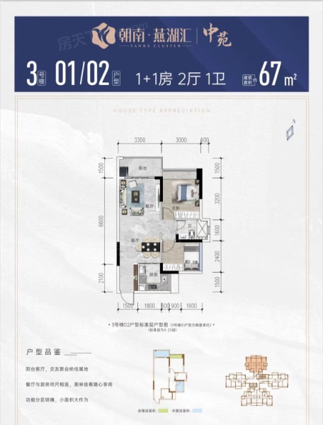3号楼01、02户型67㎡2房2厅1卫