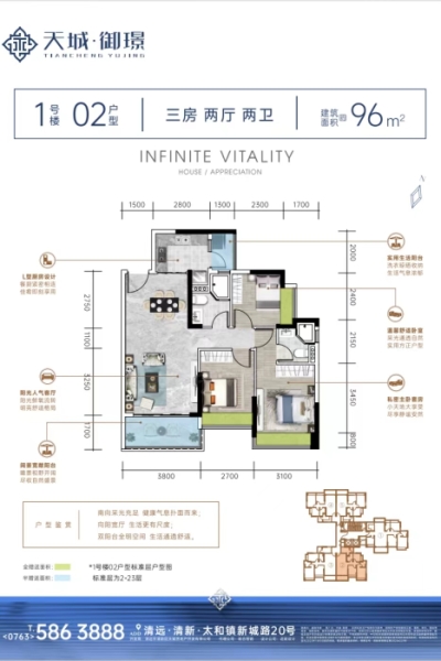 清远天城·御璟3室2厅2卫1厨96.00㎡户型图-凯时娱乐