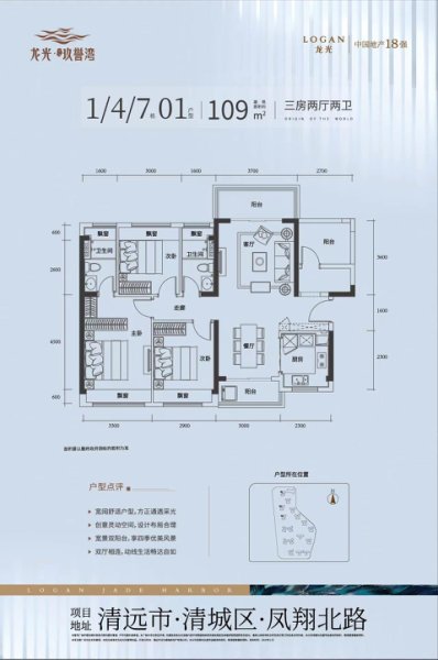清远龙光玖誉湾3室2厅2卫1厨109.00㎡户型图-凯时娱乐
