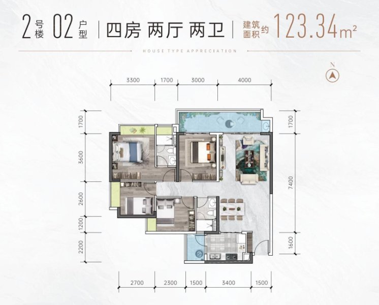 清远蔚蓝·天境4室2厅2卫1厨123.34㎡户型图-凯时娱乐