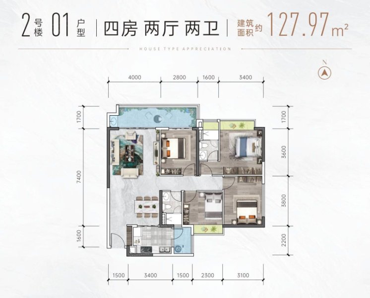 清远蔚蓝·天境4室2厅2卫1厨127.97㎡户型图-凯时娱乐