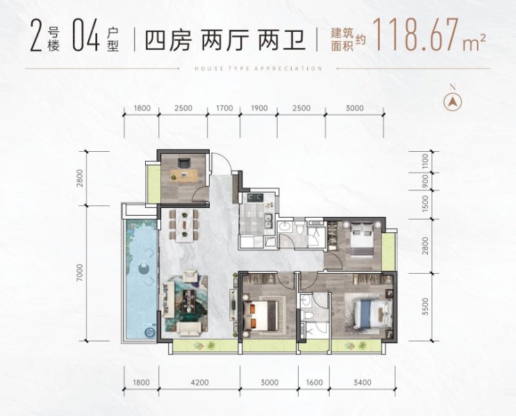 2号楼04户型118.67㎡4房2厅2卫