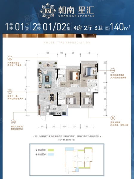 1号楼01、2号楼01、02户型140㎡