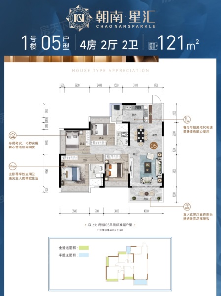 清远朝南·星汇4室2厅2卫1厨121.00㎡户型图-凯时娱乐