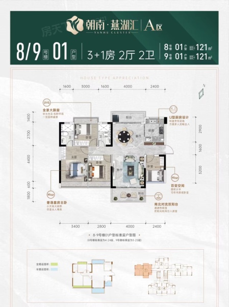 8、9号楼01户型121㎡4房2厅2卫