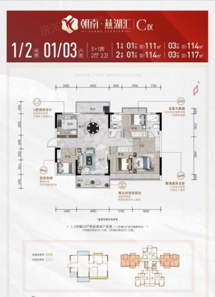 清远朝南燕湖汇4室2厅2卫1厨111.00㎡户型图-凯时娱乐